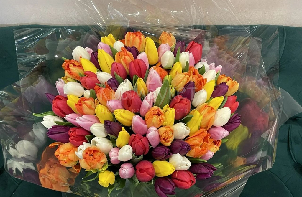 Букет из разноцветных тюльпанов (99 шт.)