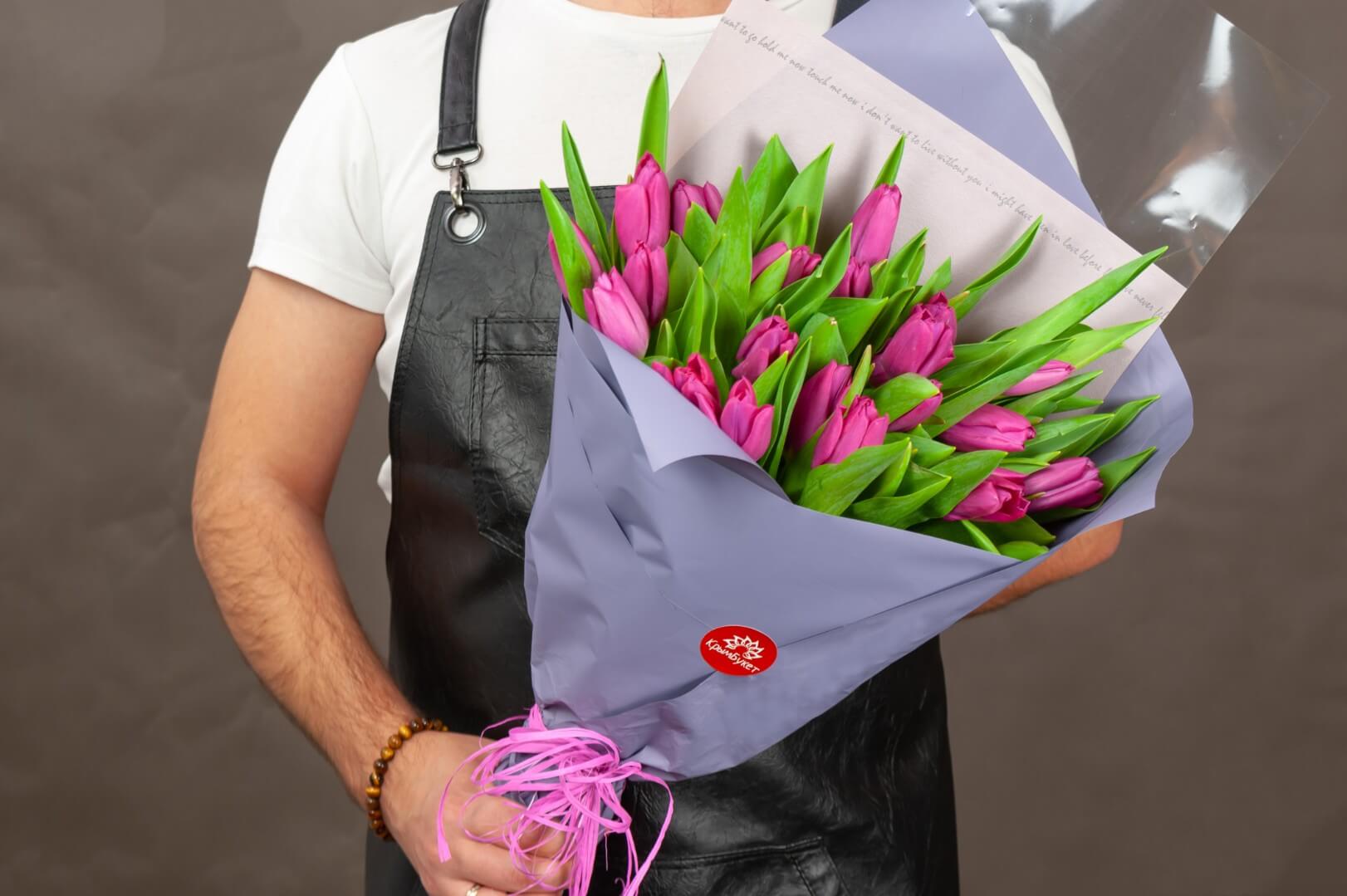 Букет из ярко розовых тюльпанов (25 шт.)