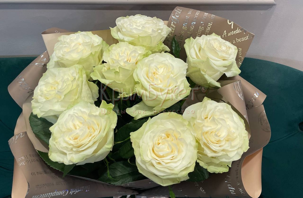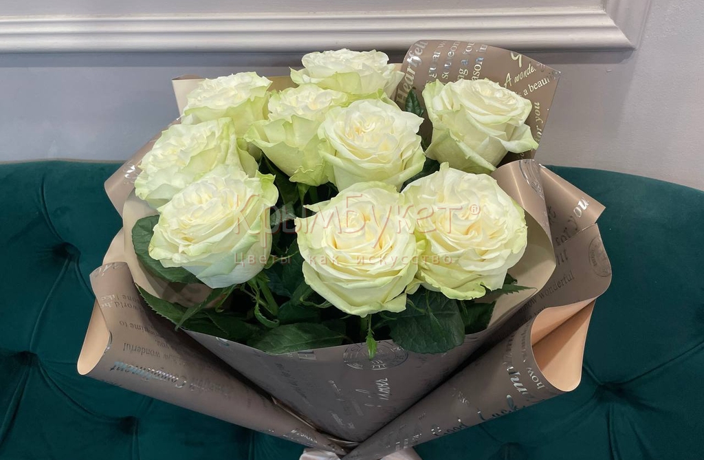 Букет из 9 белых роз "Мунстоун" Эквадор